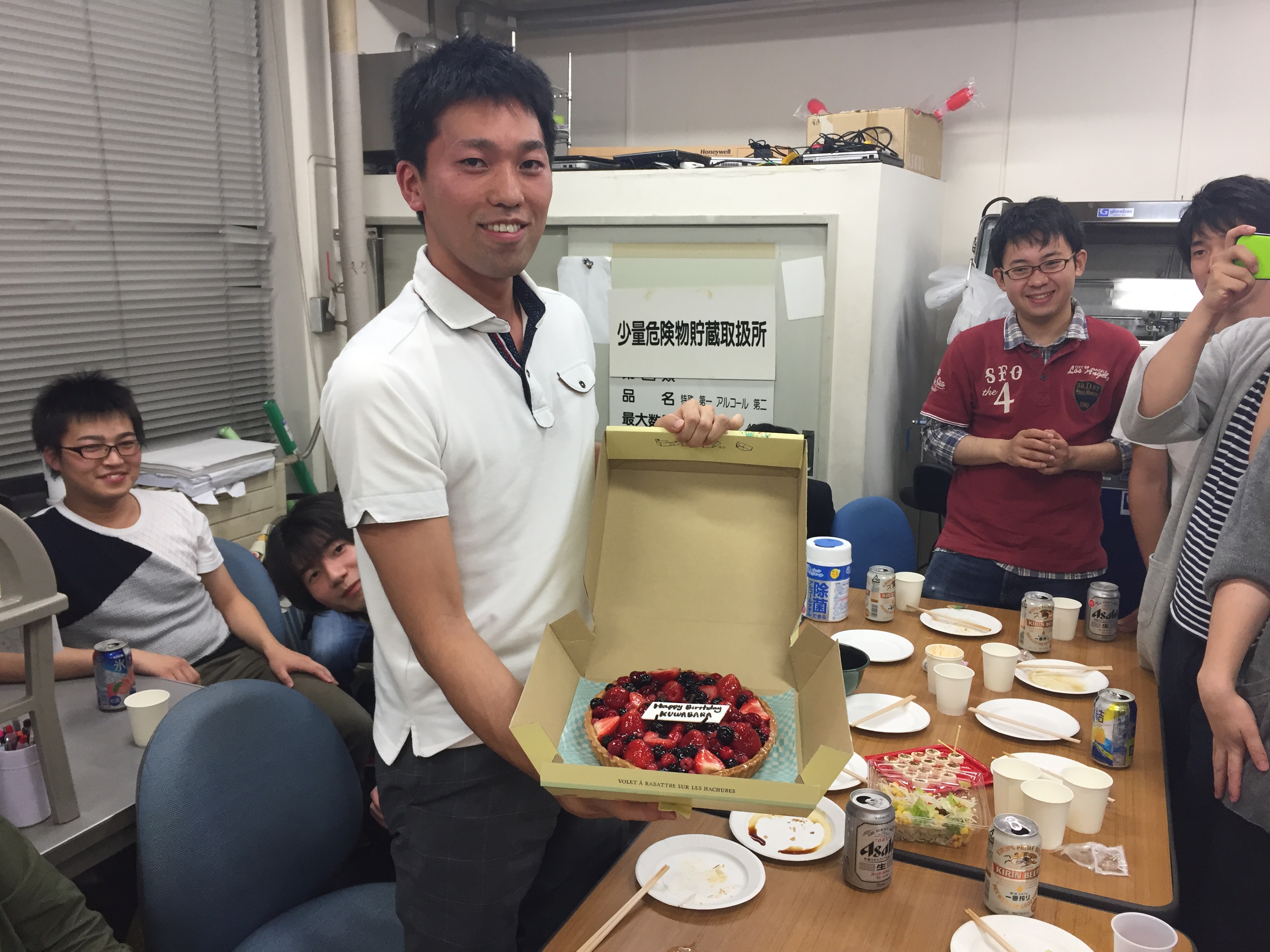 研究室で桑原さんの誕生日会を行いました。