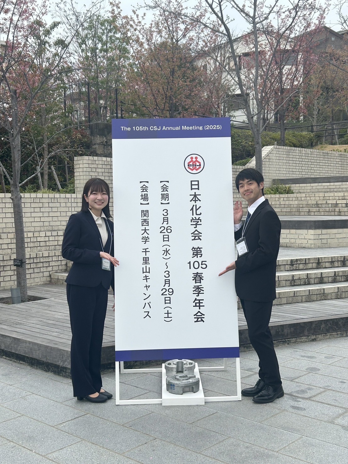 M2阿部田、M2芝間、M1堀之内、M1関口、B4風間が関西大学千里山キャンパスで行われた日本化学会第105春季年会でポスター発表を行いました。