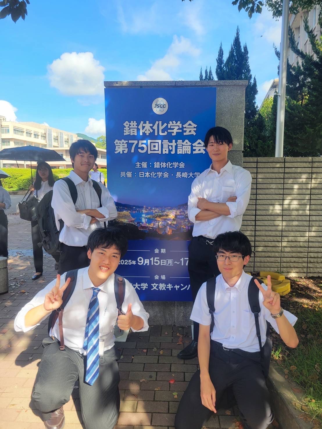 長崎県で行われた第75回錯体化学討論会にて、M2堀之内、M1原田が口頭発表を、M2佐藤、M1渋井がポスター発表を行いました。