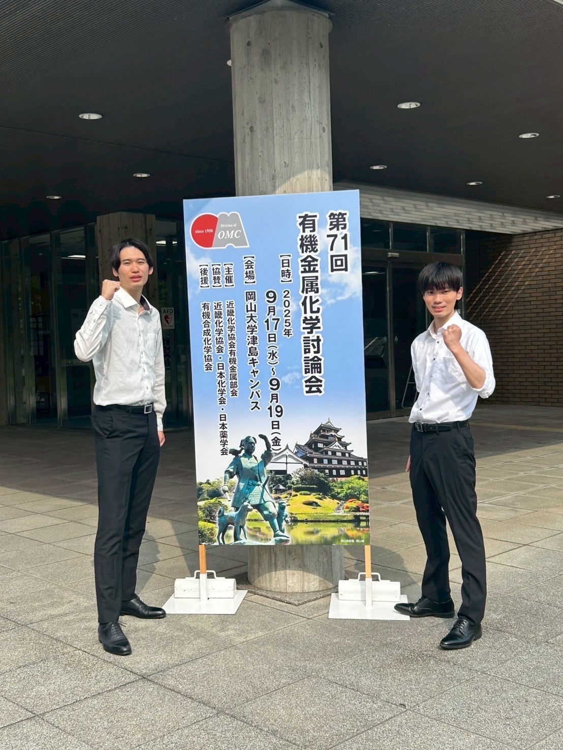 M2新谷、M1小笠原が岡山県で行われた第71回有機金属化学討論会にてポスター発表を行いました。